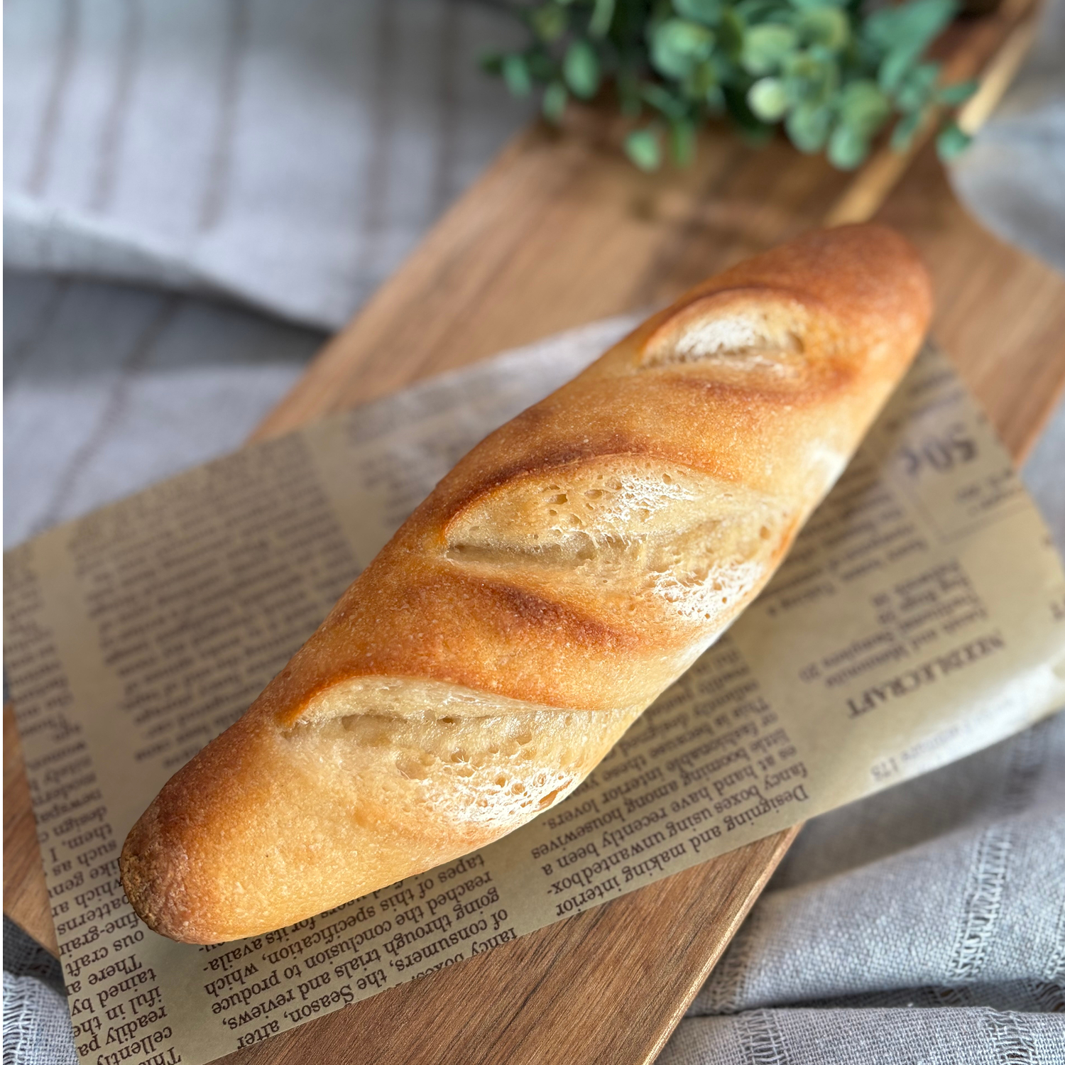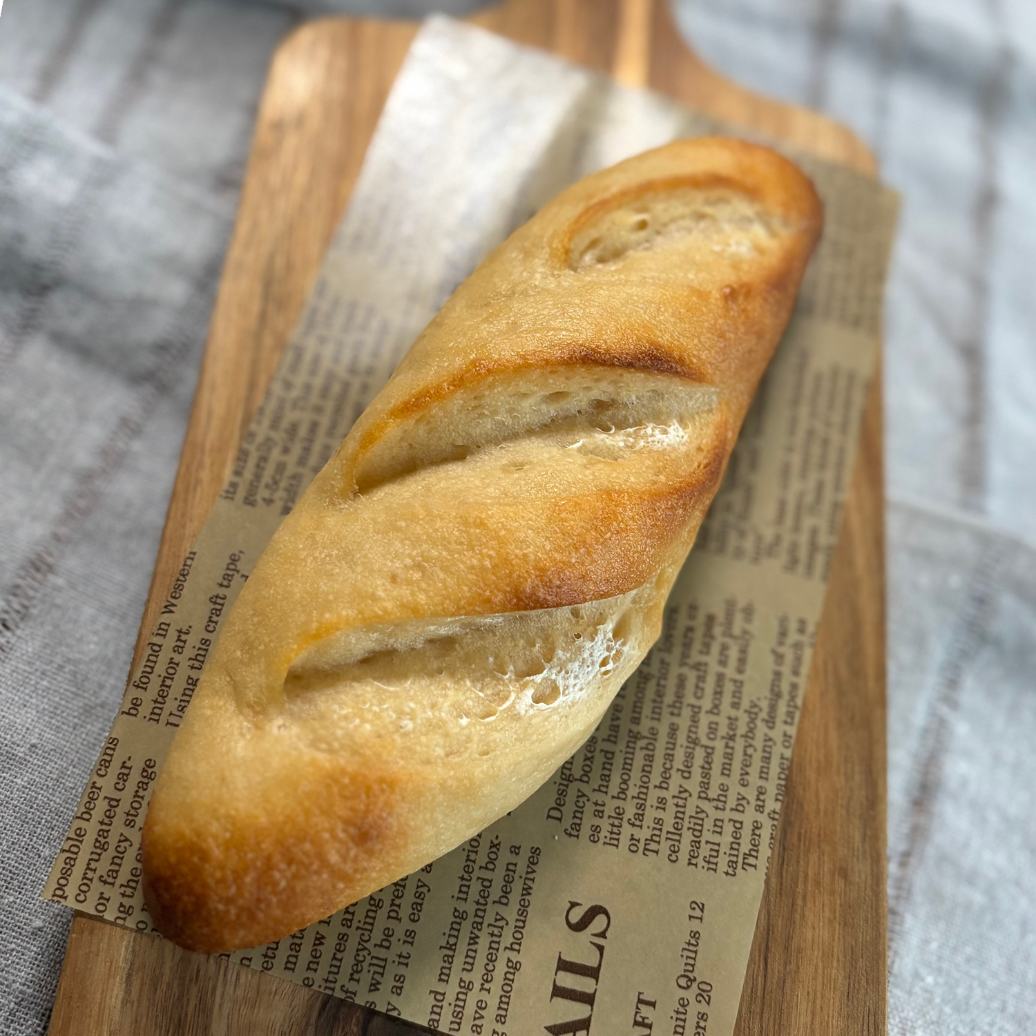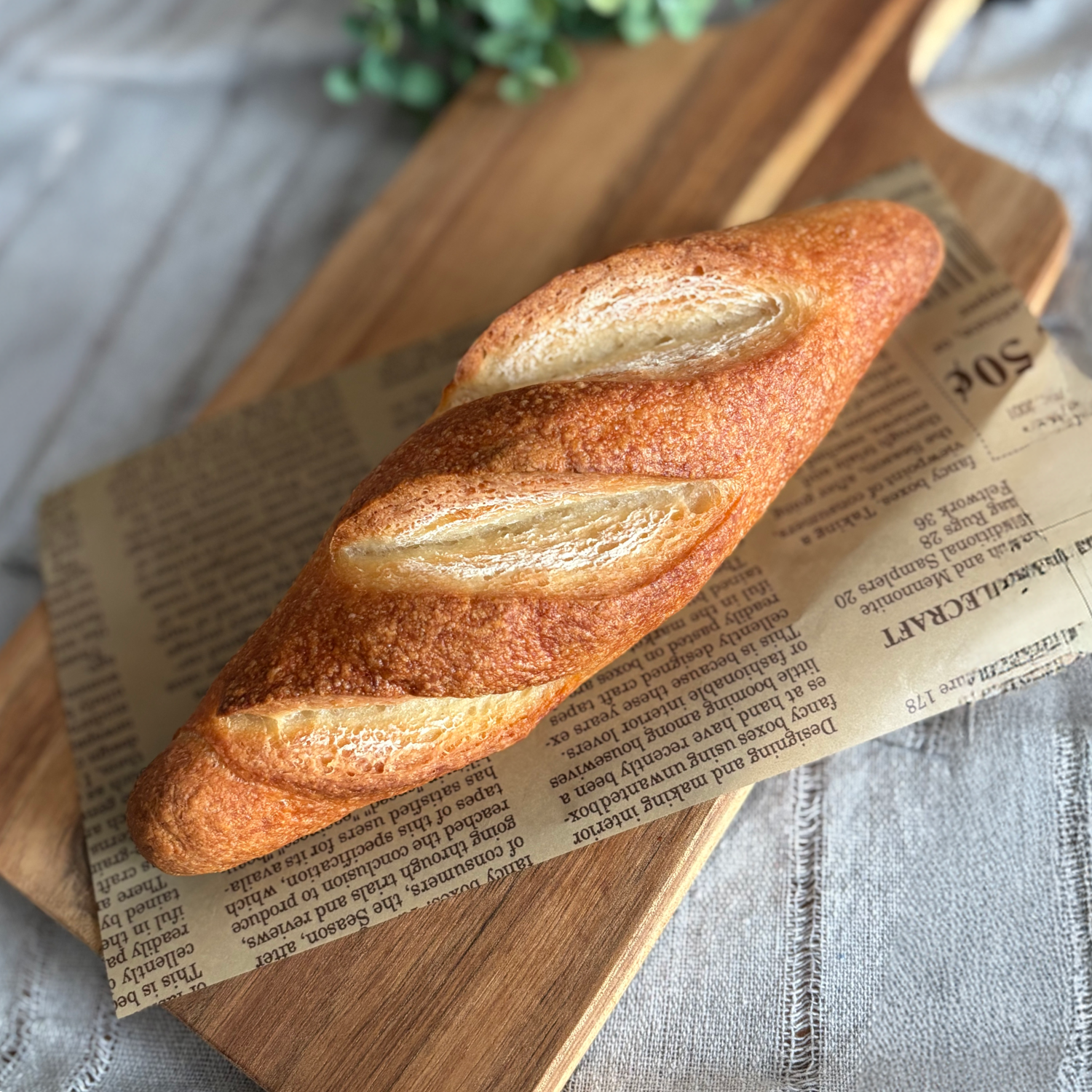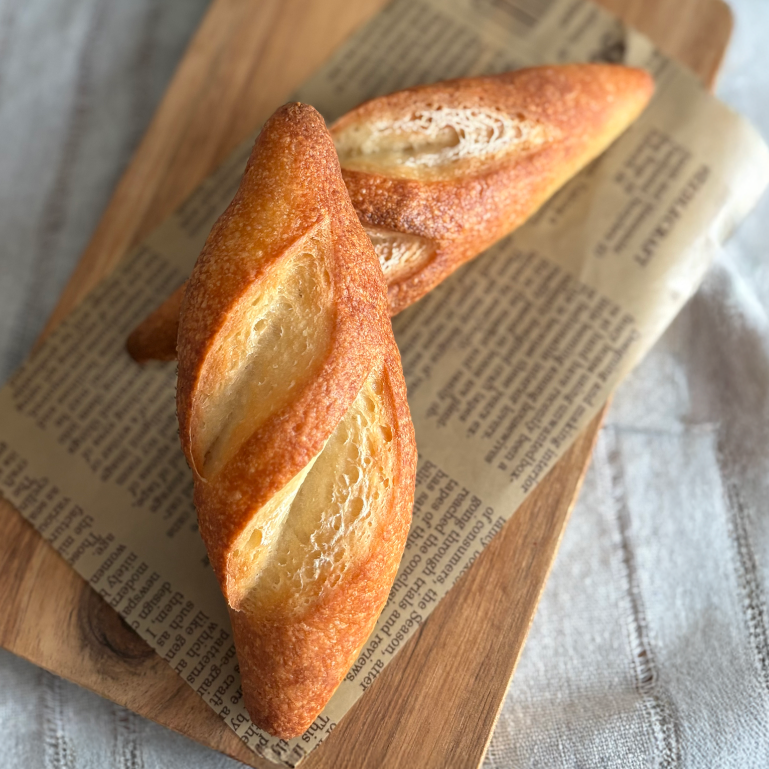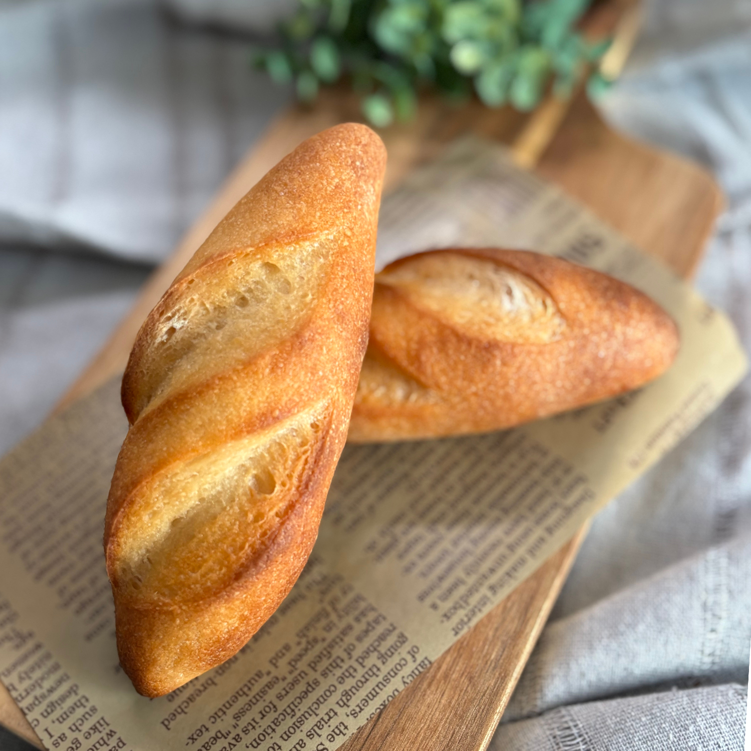 ハードな表面としっかりした弾力、なのに中はふわもちという、不思議食感のフランスパン。サンドやオリーブオイル、ジャムとも相性ぴったりです。