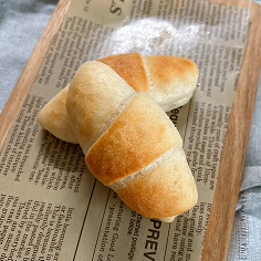 見た目は小麦パンより小ぶり。表面のハードさとは裏腹に中生地は優しいふわもちな食感。オリーブオイルやジャム、サンドパンにしても◎。