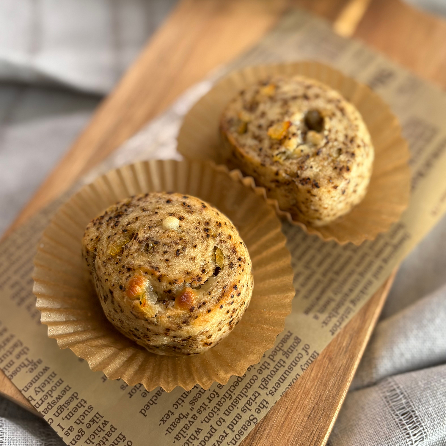 栄養価の高いクルミを混ぜ込んだ生地は少し香ばしく、噛むと一段と食欲をアップさせます。ふわっと優しい美味しさ。
